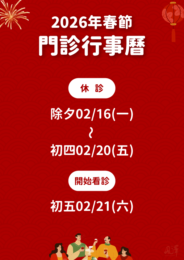 本院2026年春節除夕(2/16)至初四(2/20)休診